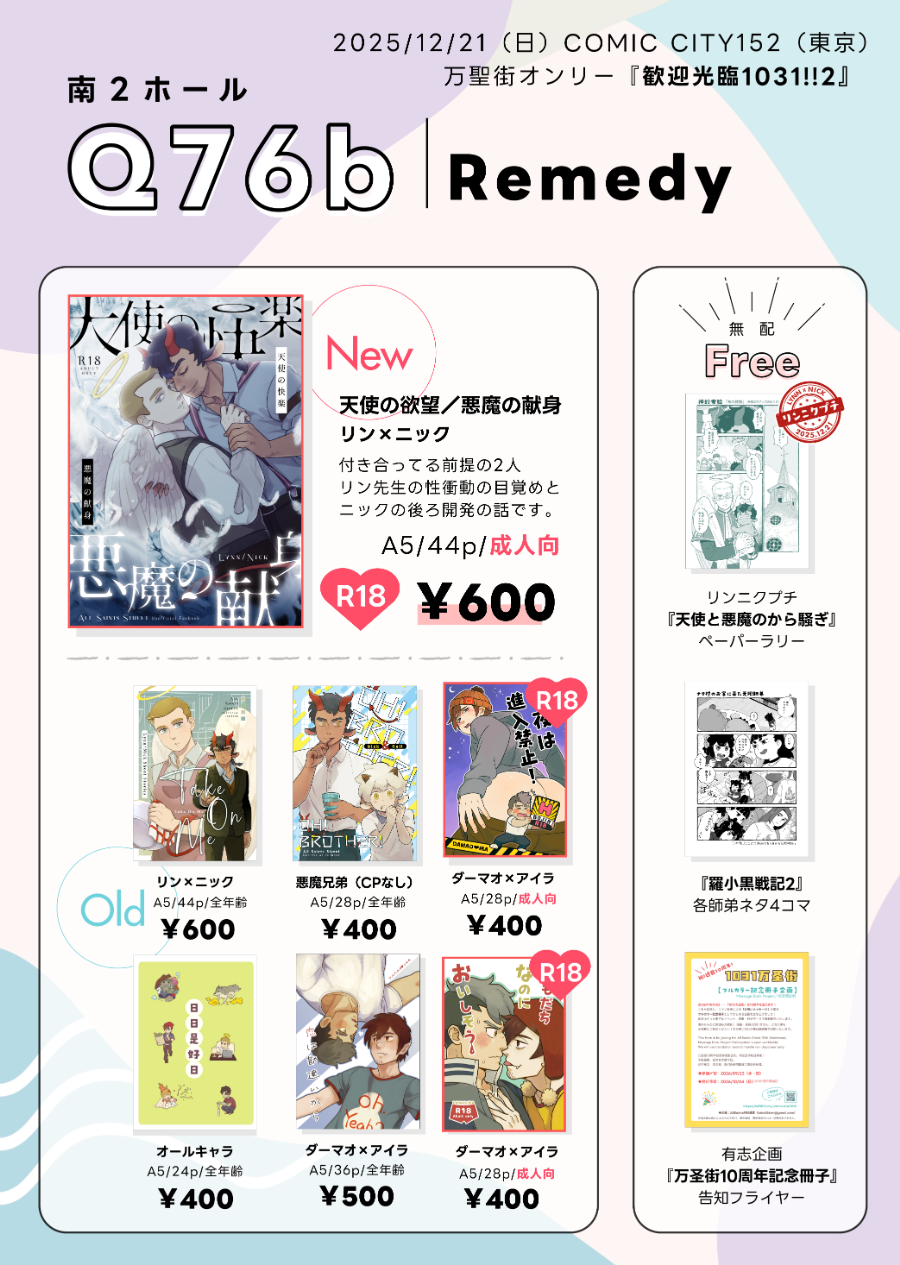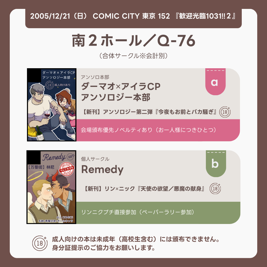 🎪【COMIC CITY 東京 152】サークル参加情報